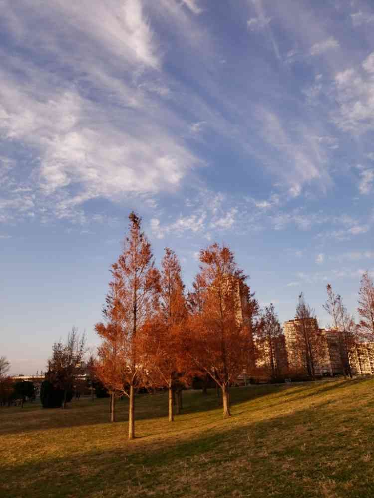 小さなメタセコイヤですけど紅葉が青空に映えますね📸