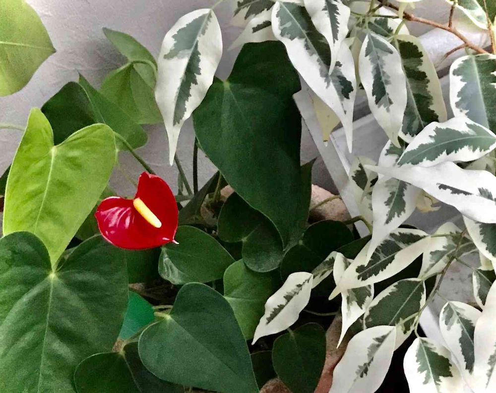 小さな庭,アンスリウム,斑入りベンジャミンの投稿画像