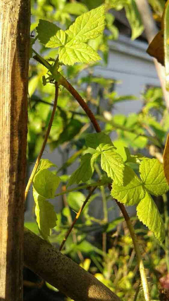 今日の花がキイチゴと言う事なので、うちのラズベリーのアップですが、こちらではアフリカミスジマイマイと言うトンデモ害虫がいて、なかなか上手く行きません。アルデヒド剤でも買って来ましょうかね。