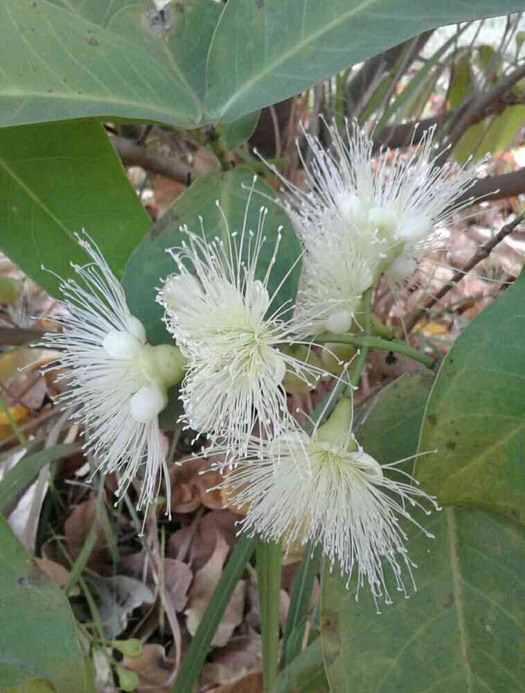フトモモ科の熱帯果樹レンブの花です。現在開花シーズンを迎えております。同じ科のフェイジョアに似た形の花で、果実は二十世紀梨にリンゴの香りを足した様な味わいです。