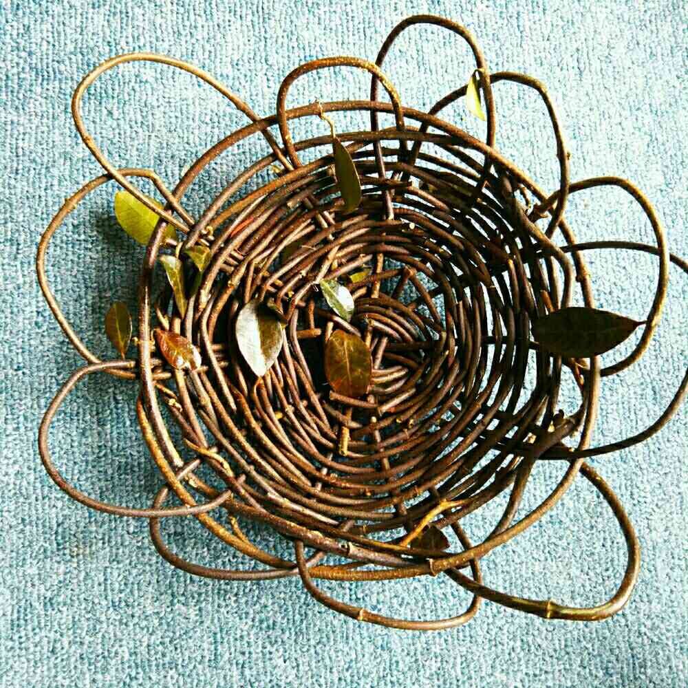 夕食後や天気の悪い日は👎収穫したつるでカゴを編んで作品にする。