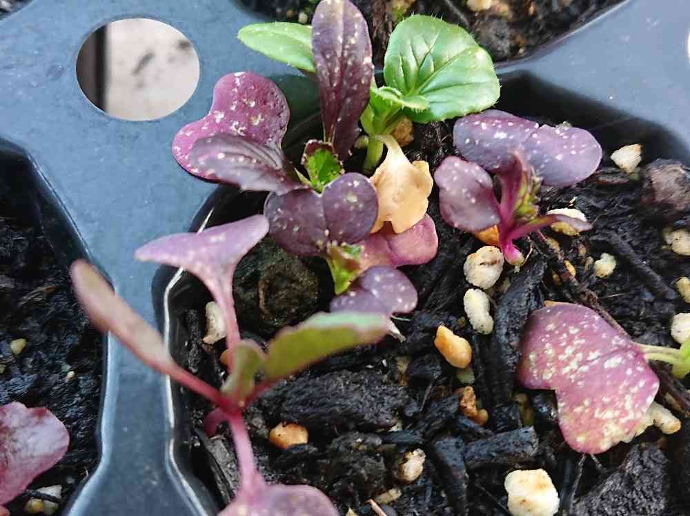 タアサイやサニーレタスのサラダミックスに寒さで白い点々が出来てしまいました(笑)でもちょっとずつ大きくなっているのが見てて楽しいんですよね~✨早く食べたいです!