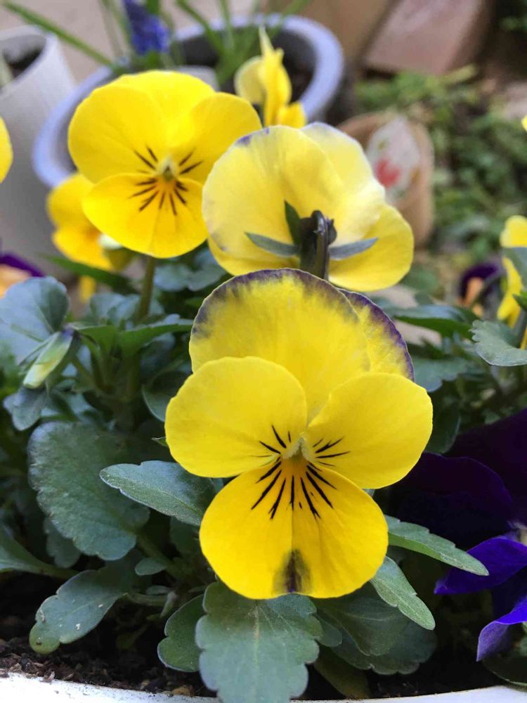 黄色いビオラが上の淵とアゴ(?)に紫が入ってきた😳