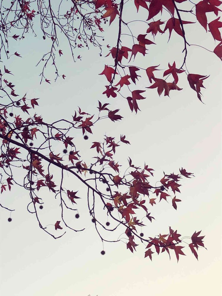モミジバフウは、葉っぱを散り減らし実も落とし、かろうじて数少なくなった葉と実を残しスカスカになりました!