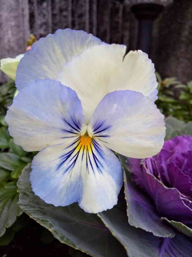 咲いた時は白いパンジー、変身してこの色です😀