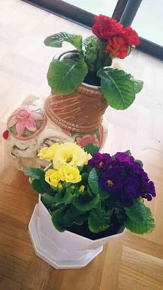 窓辺,バラ咲きポリアンサス,植え替えの投稿画像