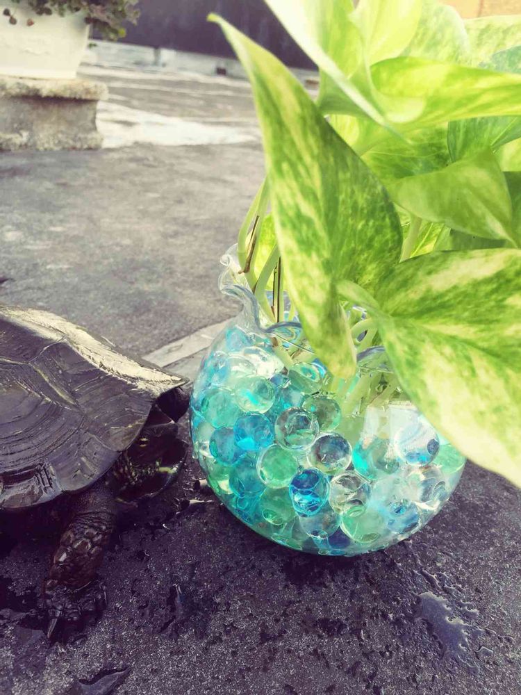 まっさきに突っ込んでびっくりしたらしいうちの亀さん、なんでビビッてるの(笑)