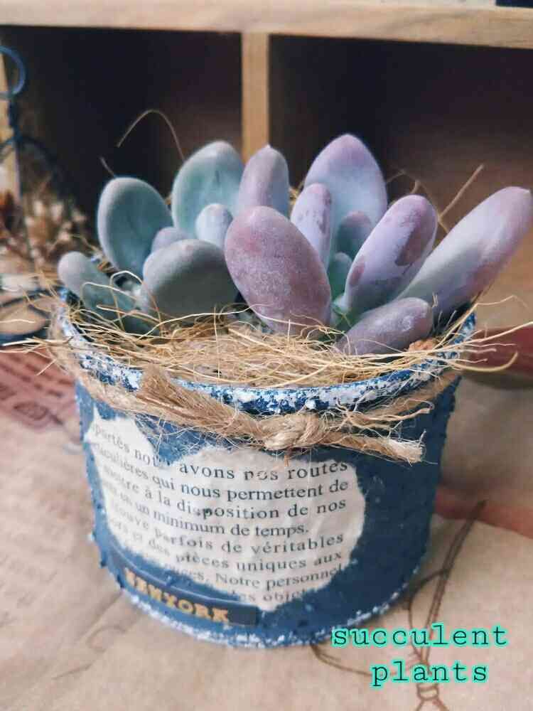 むちむち&ぷりぷりの可愛い子を濃い色リメ缶に植えましたぁ~🎶