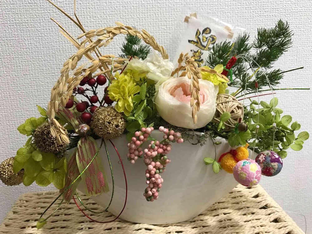 後のお正月プリザーブドアレンジ🎍は金や赤などおめでたい色合いで華やかです❤️