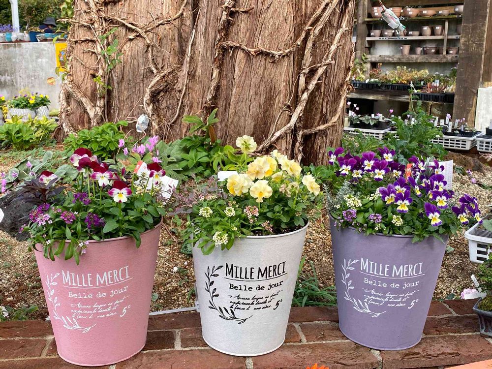 オシャレなブリキ鉢に色を合わせて💗♡💜