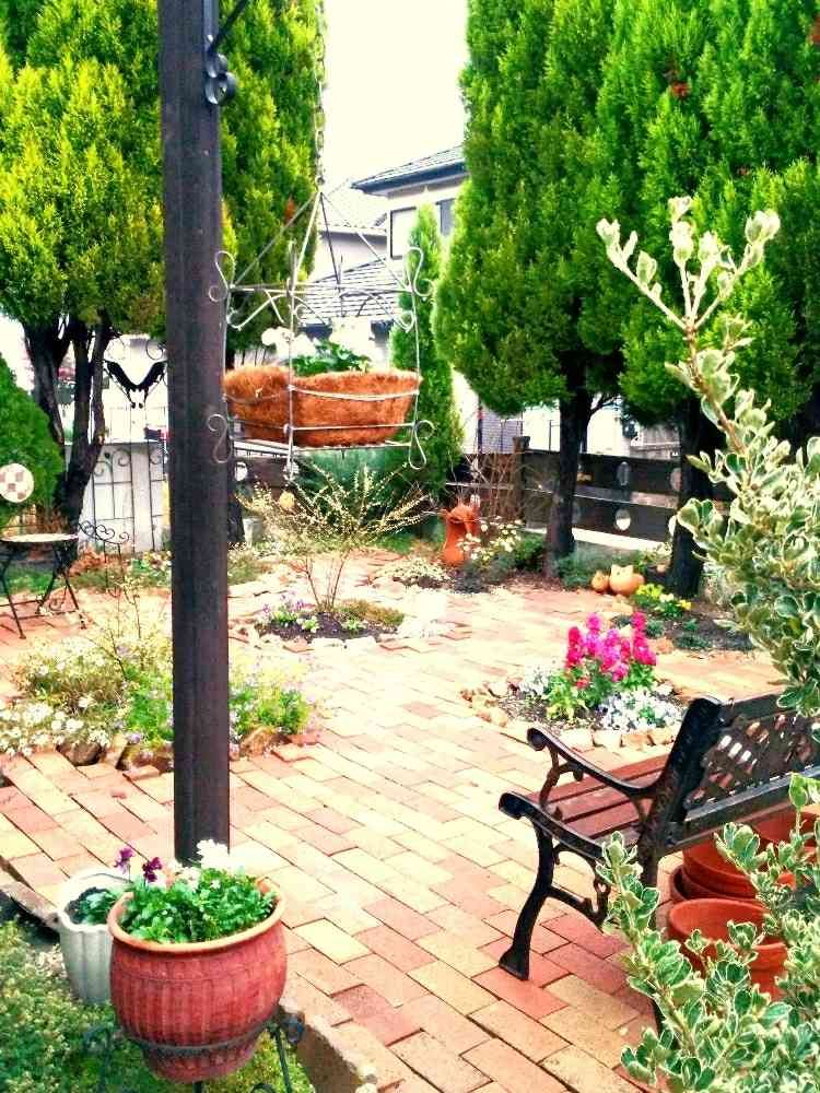 はいベンチでコーヒーやお酒やお月見なんかお庭タイム楽しんでますよ