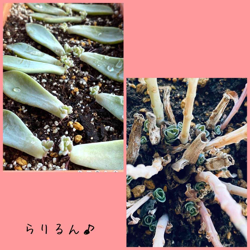 下の部分を葉挿ししたのがたくさん発芽しました(∩´∀`∩)🍀