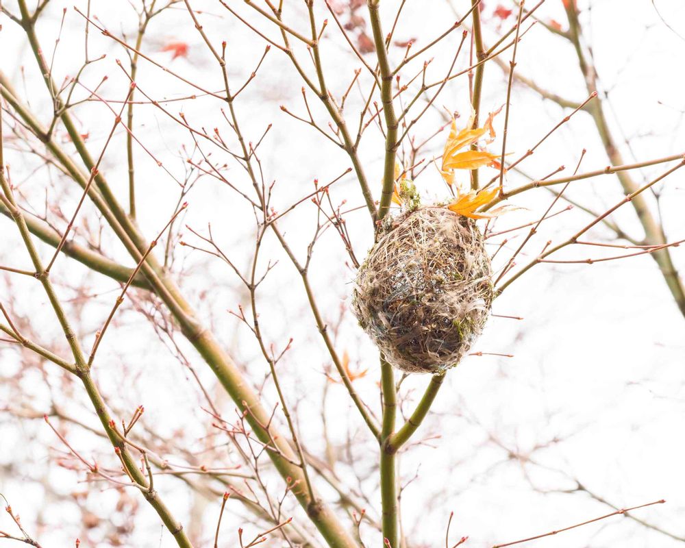 モミジ🍁の葉が落ちて役目を終えた🦜鳥の巣がよく見えます。結構、人通りの多い賑やかなところに巣作りしてたようです。全く気づきませんでした😳