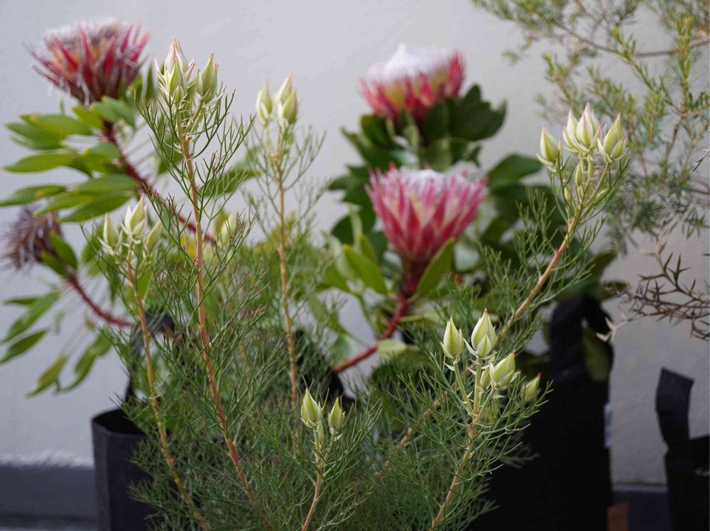 咲いてるプロテアと蕾のセルリア、コラボです☺️