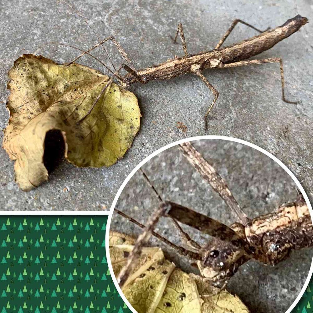 トゲナナフシ:ナナフシ目ナナフシ科。本四九州で普通。湿った雑木林や、その周辺の路上で見られる。好き嫌いなく色々な植物の葉を食べる。単為生殖(オス要らず😆)。意外にもカワイイ顔(*´`)