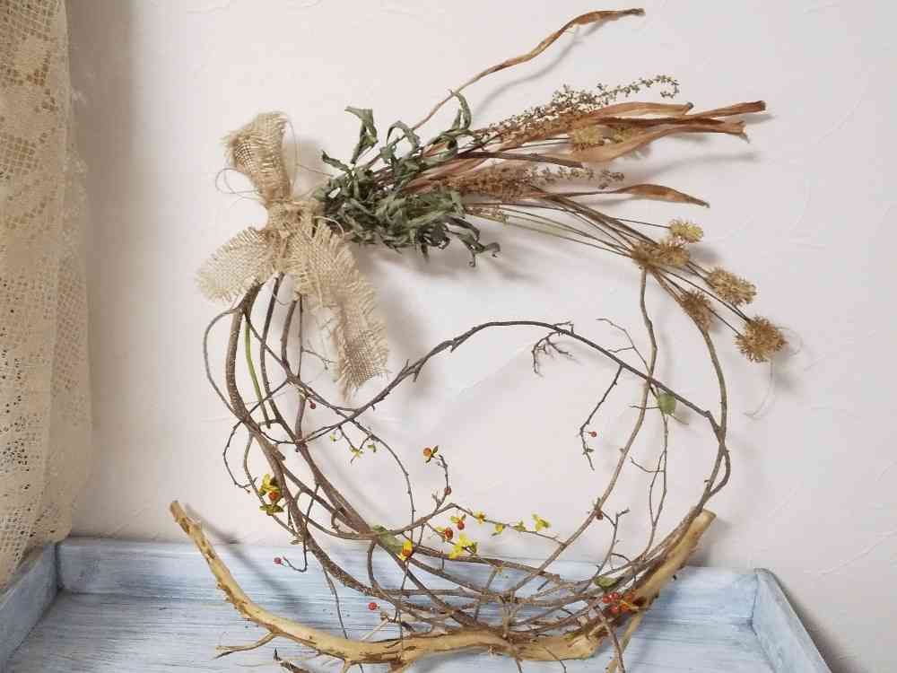 前に作ったツルウメモドキのリースを仕立て直し☺️
