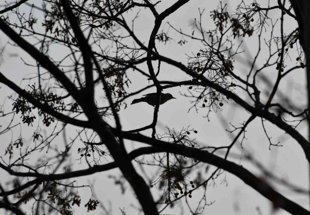 センダンとヒヨドリの影絵