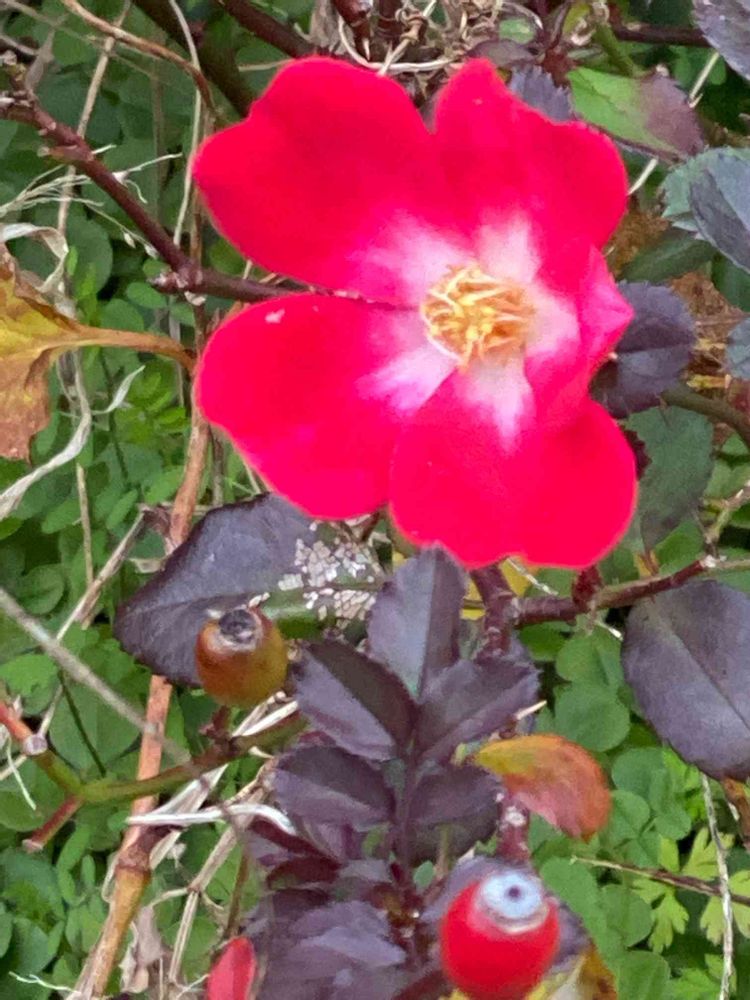 ロサ カニナ(ドックローズ)赤い花もあるのね😍