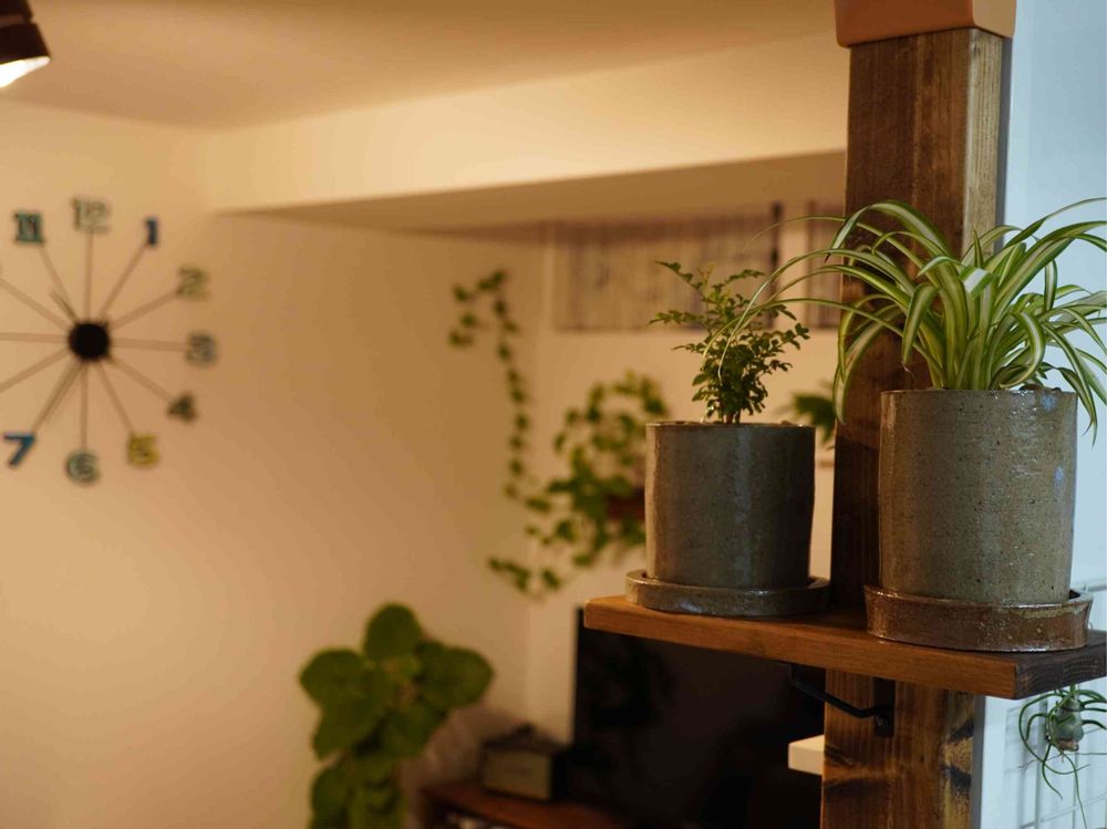 ディアウォール +α でリビングとキッチンの間仕切りの壁に「鉢置くトコ」作りました😌