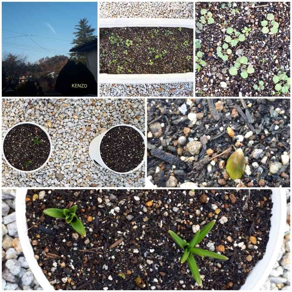 3鉢の其々から2つ3つと発芽しています。18個中7つの発芽を確認した。