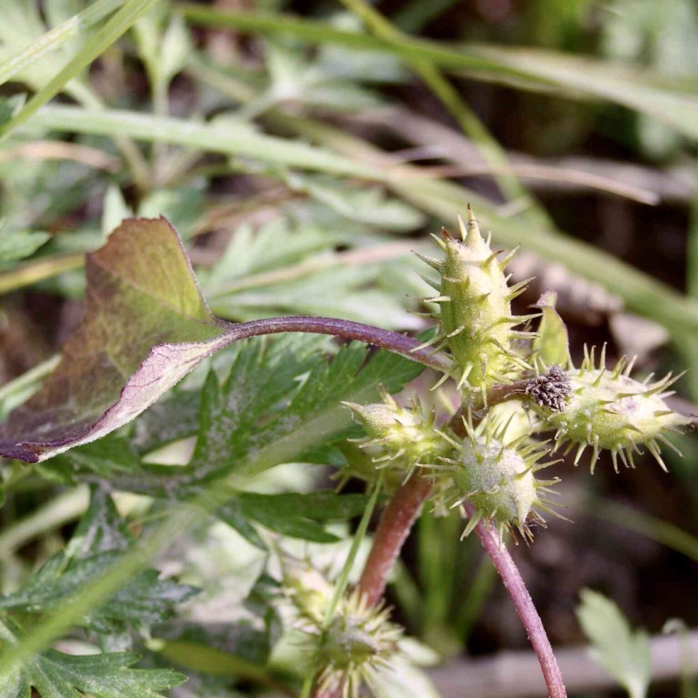 「ひっつきむし図鑑」によれば、オナモミのツノはずいぶん小さいんですよ。
