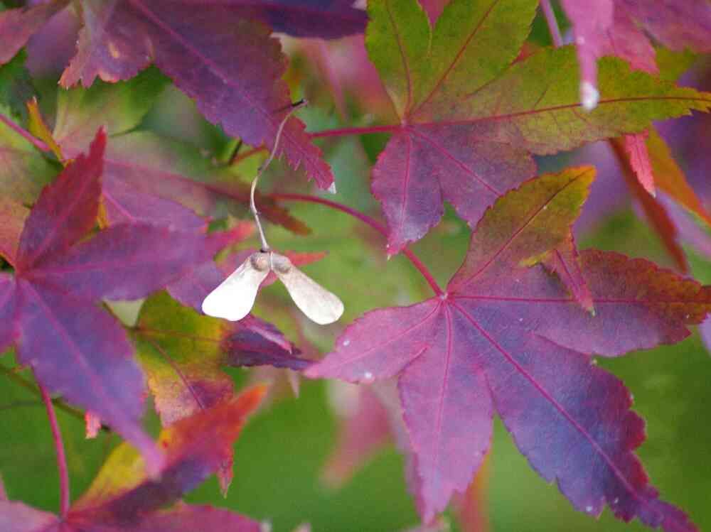 翼果がピンク色~紅色の頃は、まだ完熟していないので 飛べません。