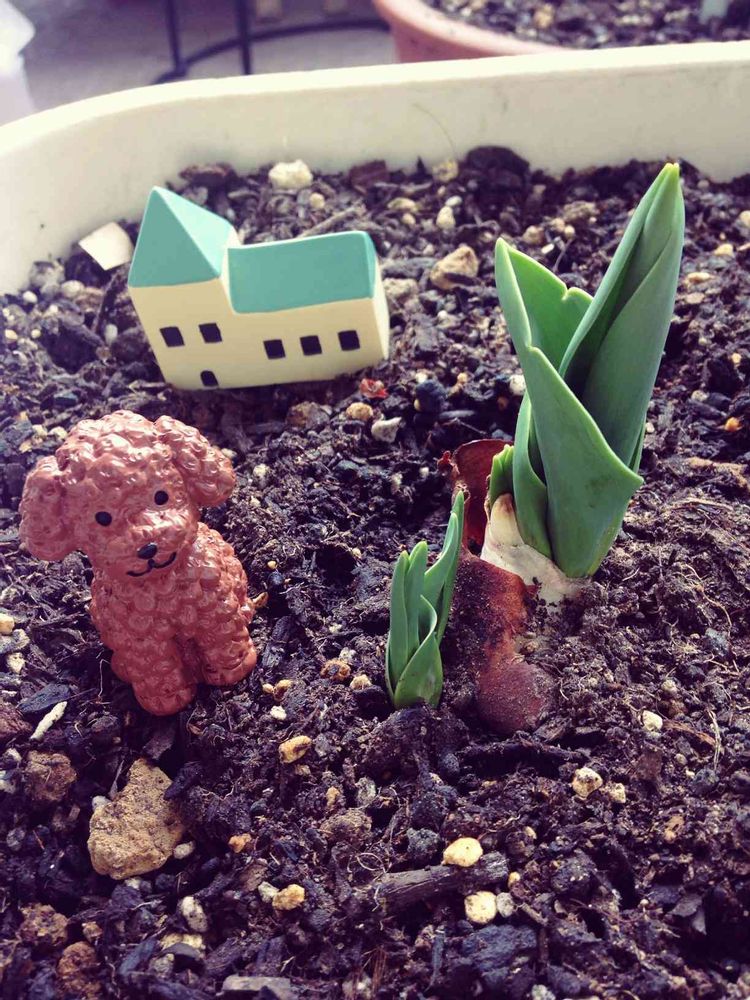 スーパーのキャンドゥで、トイプードルちゃんゲット😊実家にいる子にそっくりなので💕今日からチューリップ見張り番犬に任命されました。