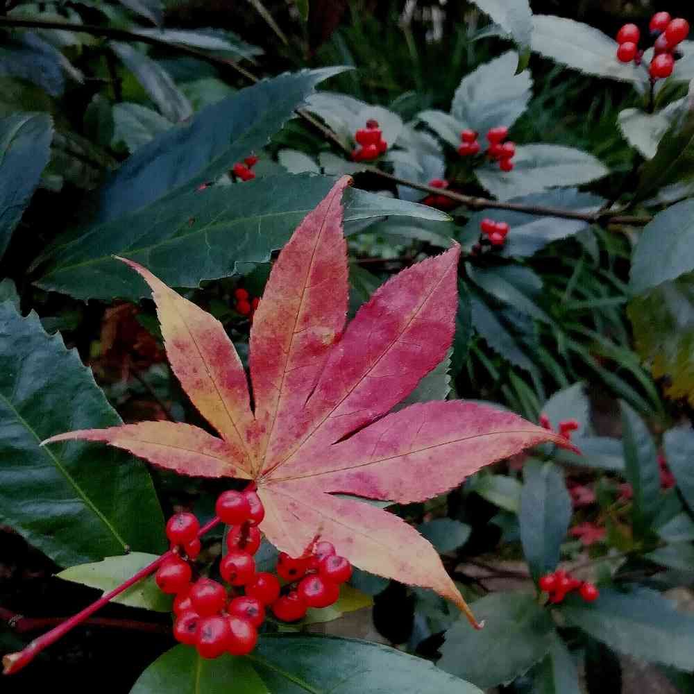 小さな庭,千両(センリョウ),かえでの紅葉の投稿画像