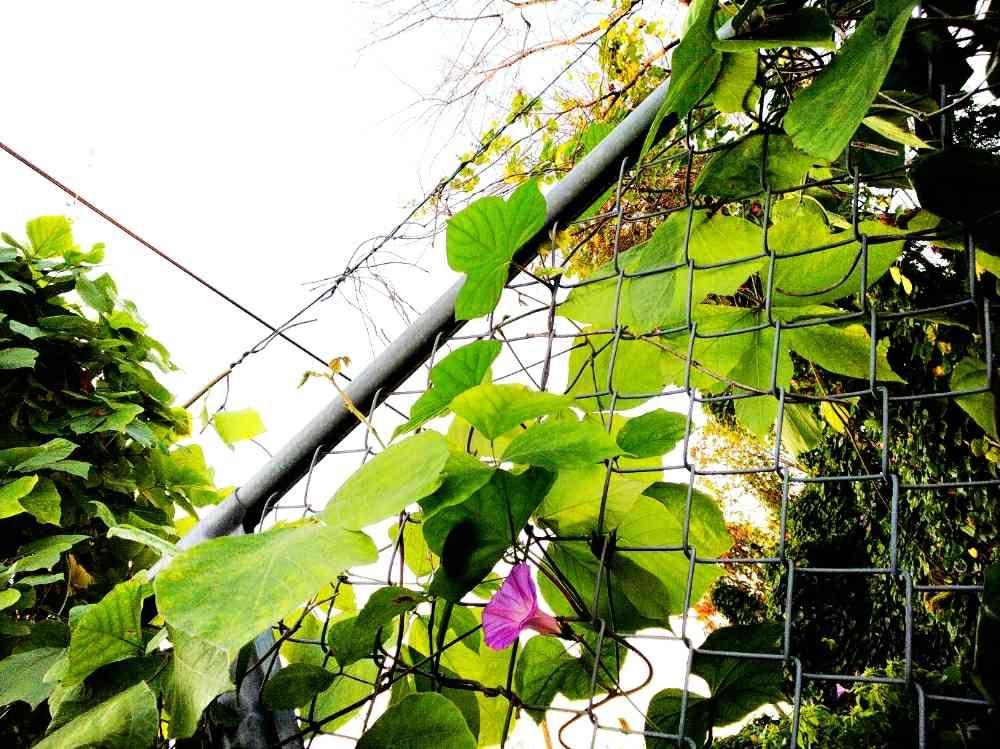 この奥、線路沿いの金網の中は朝顔と葛でジャングルの様になってます。