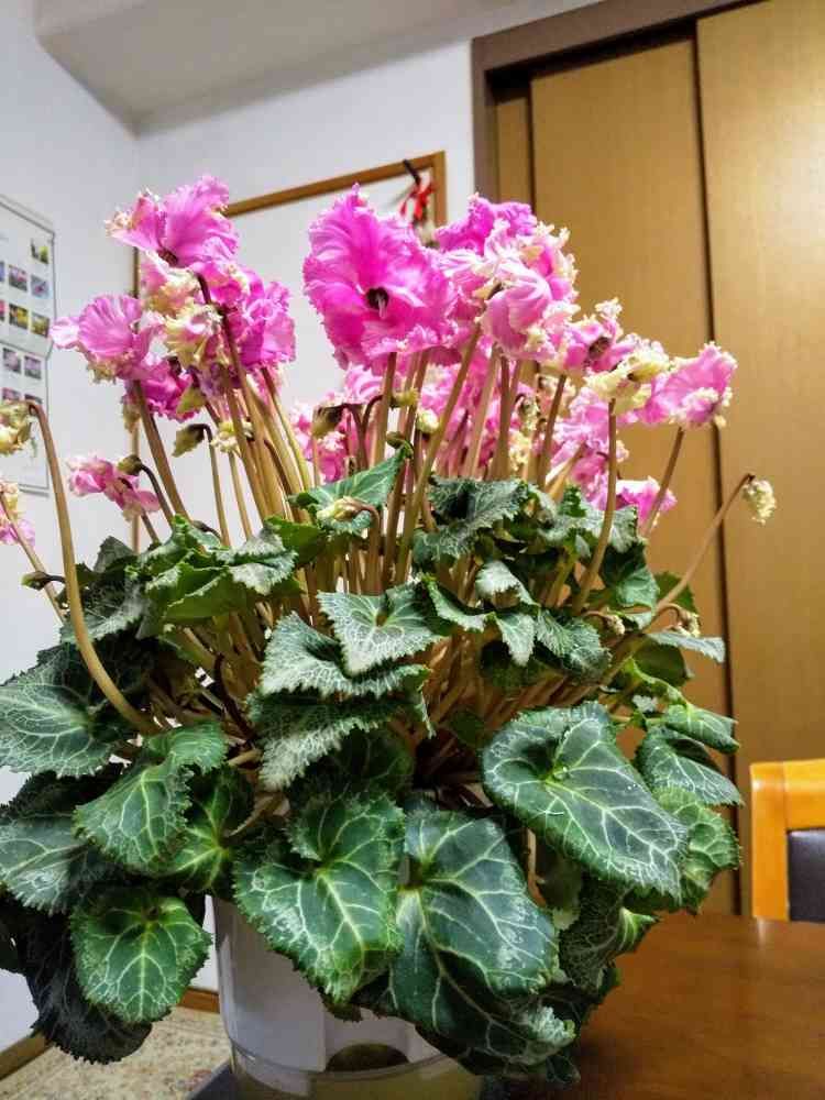 名前の如くフリフリ姿で、チョッとキッチンに場所を変えてもらったシクラメンは、