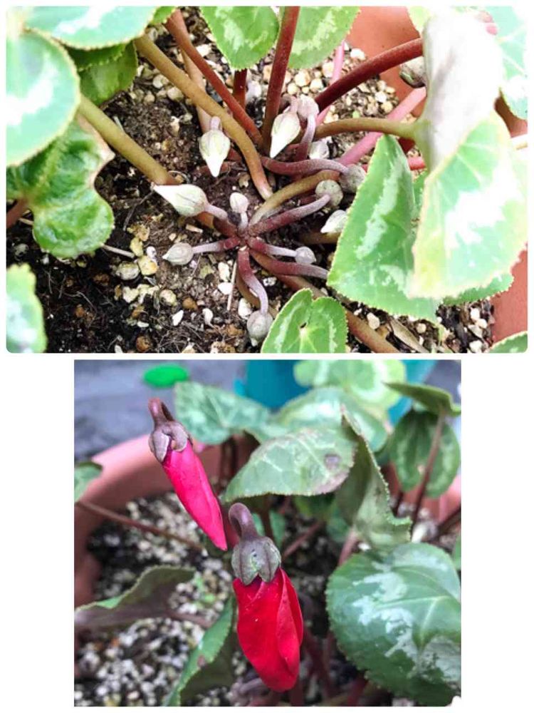 鬱蒼としたシクラメンの森から何やら赤いモノが😳‼️