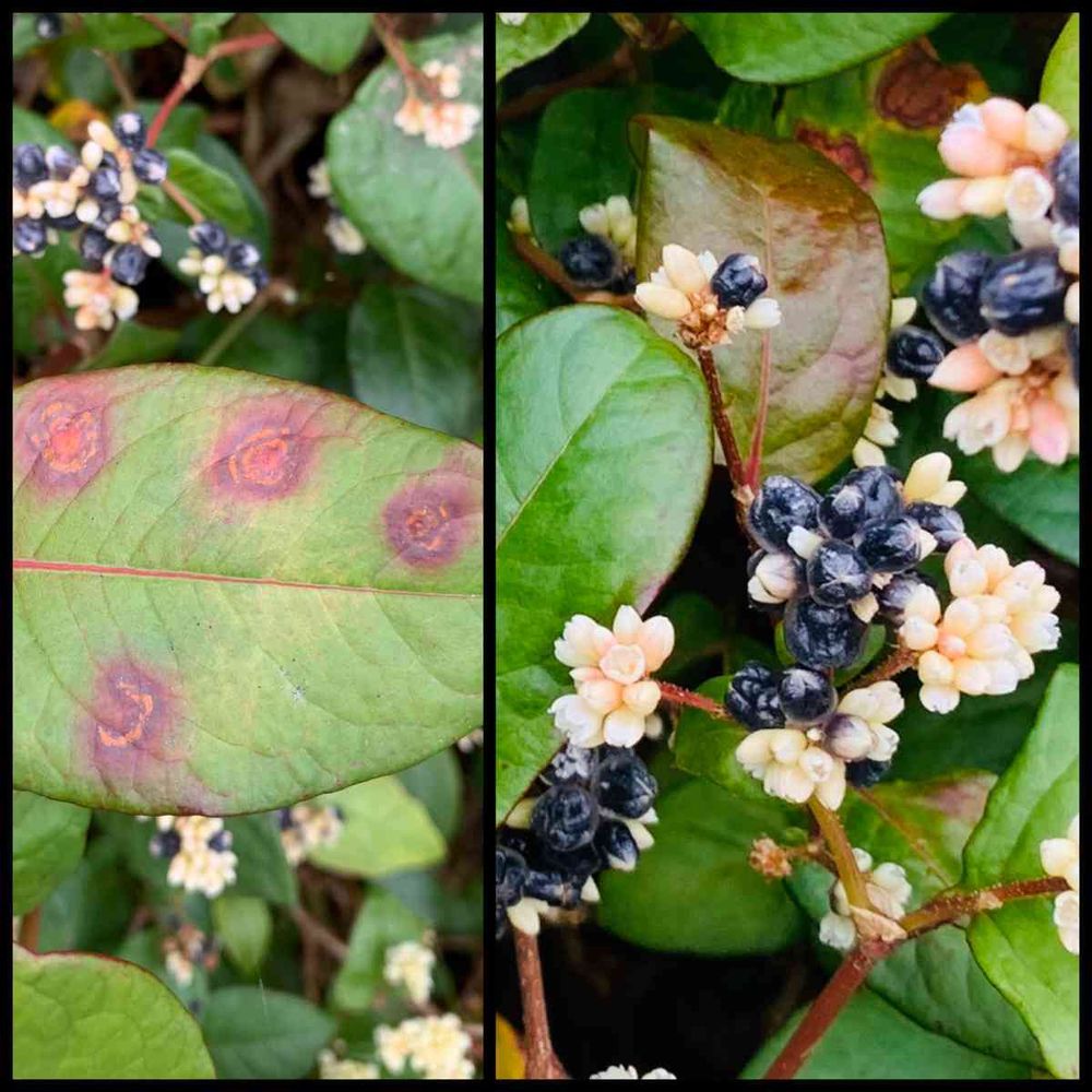 巨大なヒメツルソバ⁉︎と思って調べたら、ツルソバのようです。黒いのは果実。在来種で、花が白っぽく、葉に毛がなくて艶があるのがヒメとの違いだそうです。⬅️は葉っぱの赤い模様が気になって撮りました。虫害?病気?糞害?