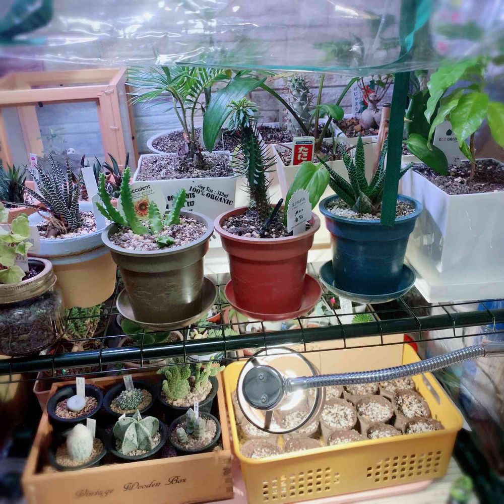 やっと窓際の多肉を部屋のビニールの中に入れました😅