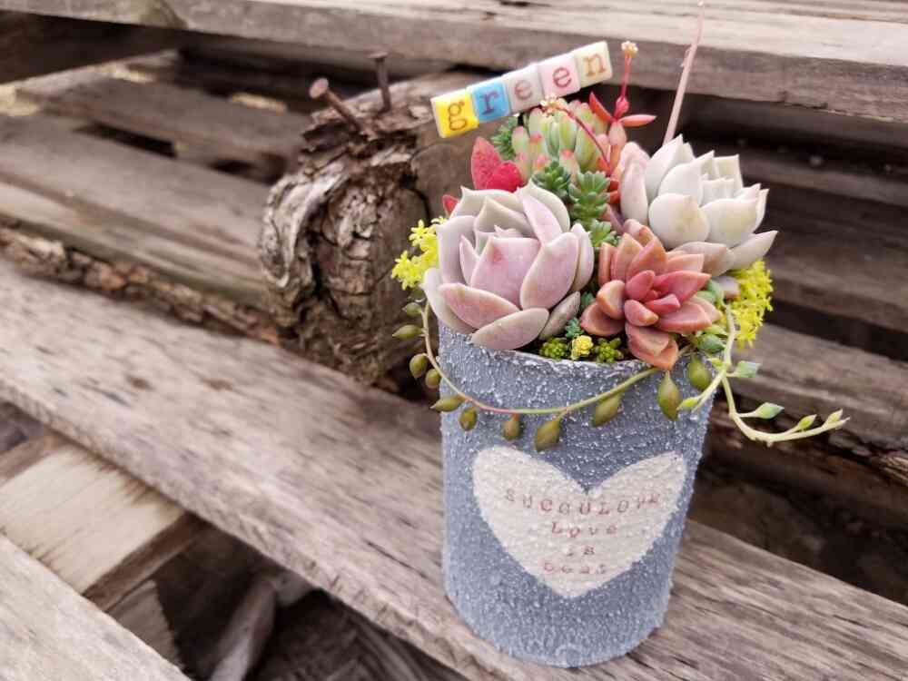 綺麗な多肉と素敵なパステカラーのリメ缶😄
