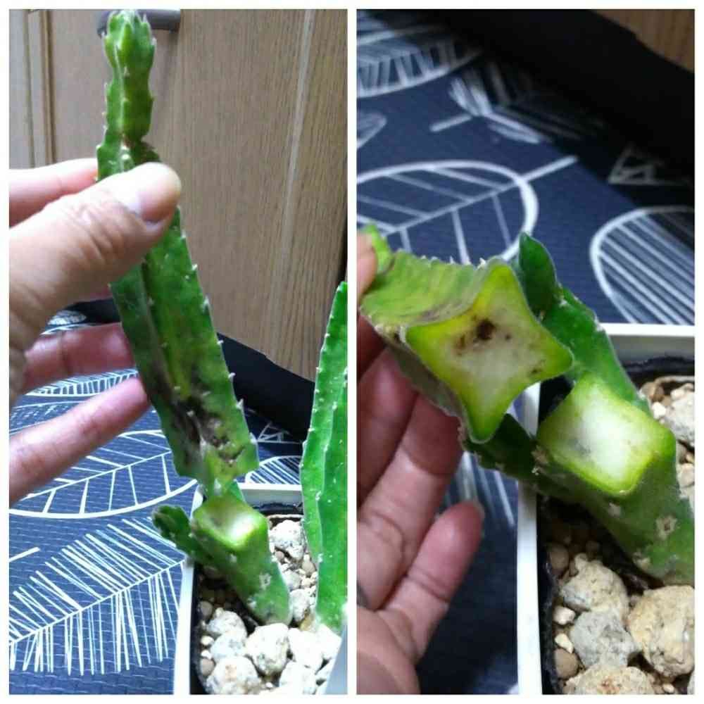 レーンデルツィアエは部分的に黒くなってその部分が壊死した感じにみえる。切ったら中も黒い…😰