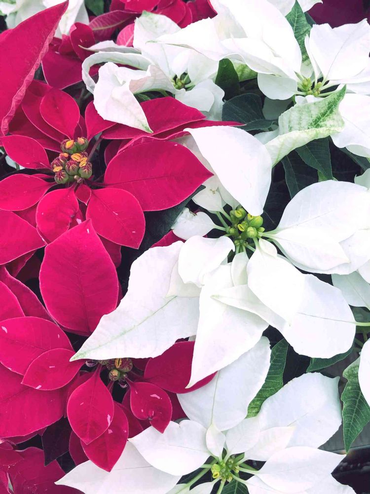 綺麗な、紅白の、ポインセチアですワン🐶🎄白は、珍しいです。とっても綺麗ですワン🐶🎄