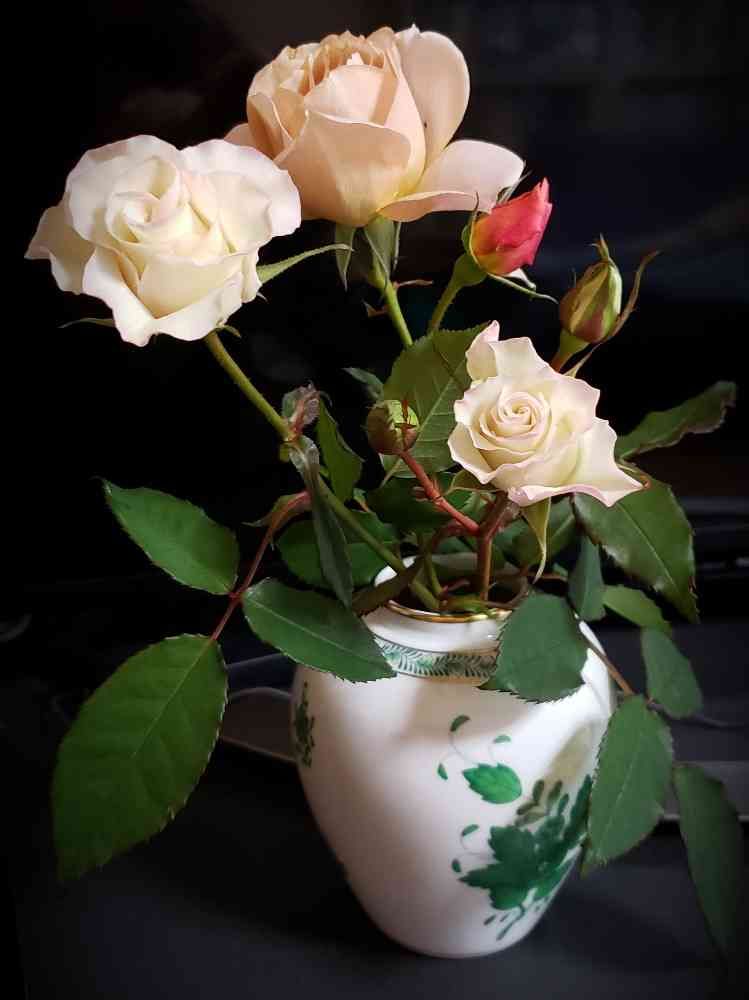 亡き父の残した陶器に生けてみました。一気にクラシカルに。
