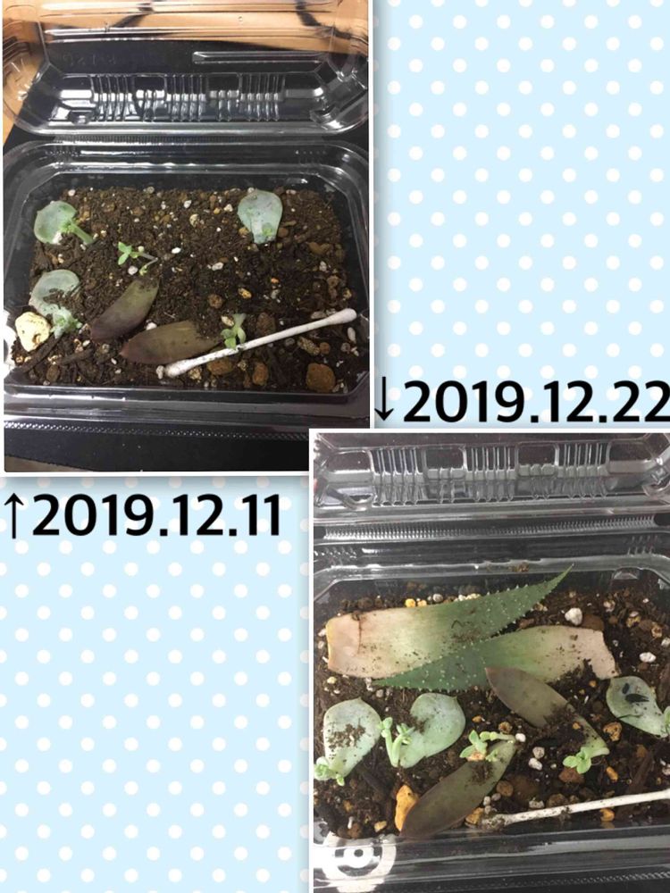 買った時にはすで落ちた葉から生えていたクラプトベリアの白牡丹と、セダムの銘月ベイビー!大きくなるの早い!😃