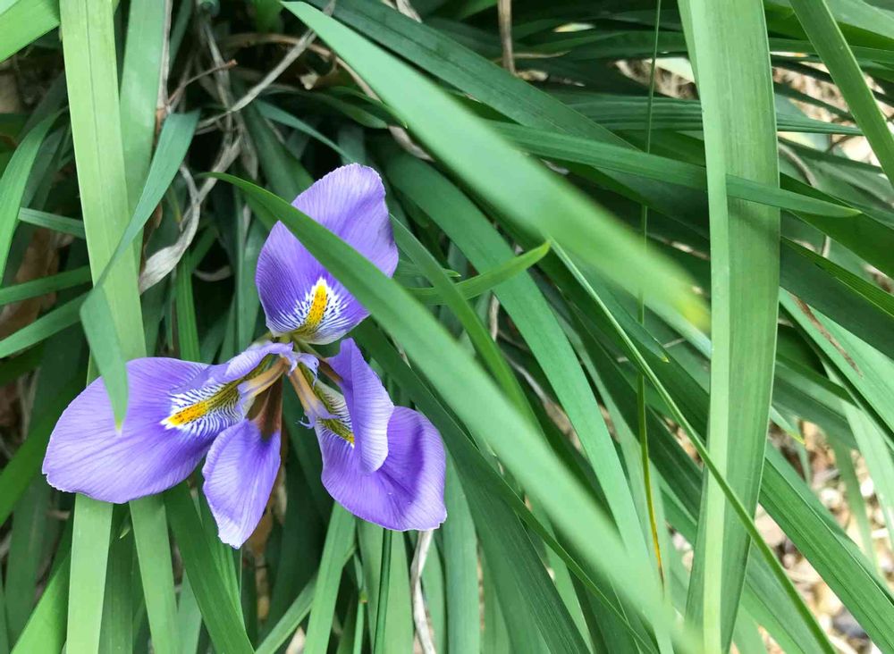 🌸たいそう地味なのですが、アヤメ のようです。調べるとアヤメにもたくさんたくさん種類があって色んな顔がありました。