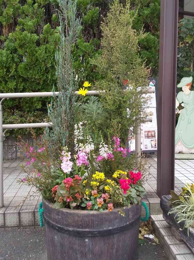 ケーキ屋さんの前にデーンと寄せ植え発見!