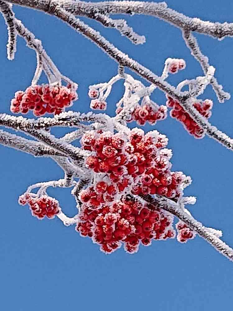 真っ青な空に凍てついたナナカマドがとっても綺麗ね✨