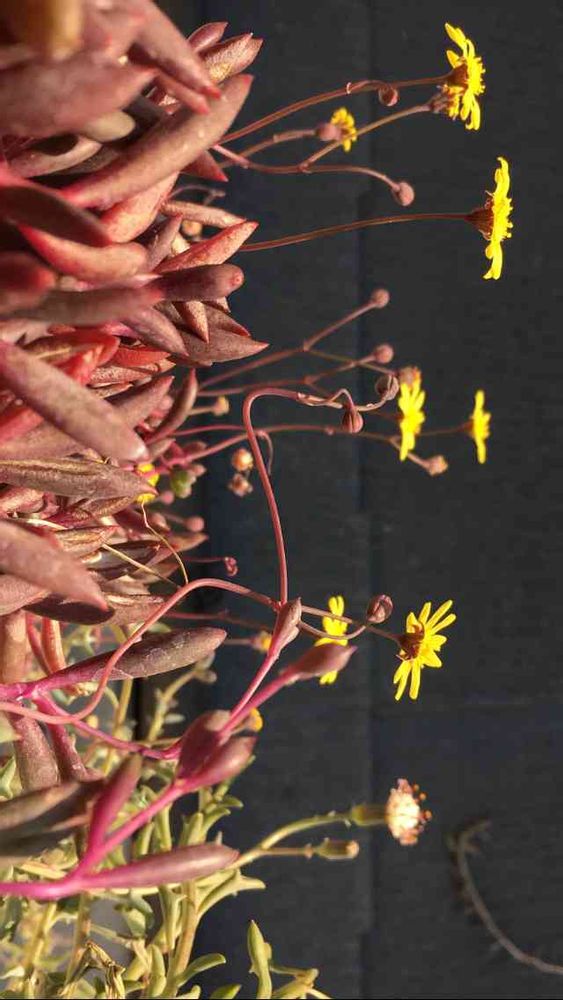 ベランダに垂れ下がって光の方へ向かって咲いてるルビーネックレスさん^_^♡♡♡