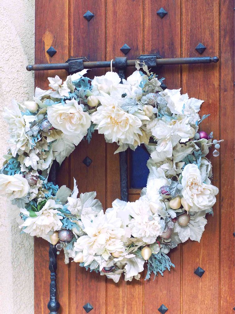 ブルー系やさしい色合いのリースですね、