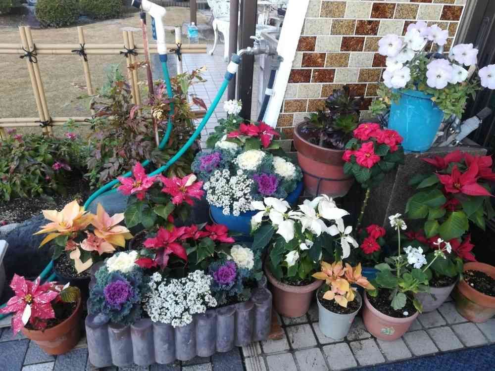 今朝、玄関のお花を撮りました。とっても綺麗なお花です。賑やかです。