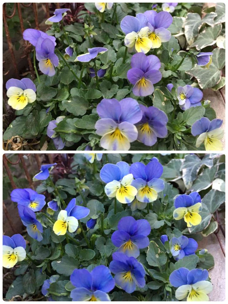 おちあいけいこさんのビオラ、やっと少しずつ咲き始めました。