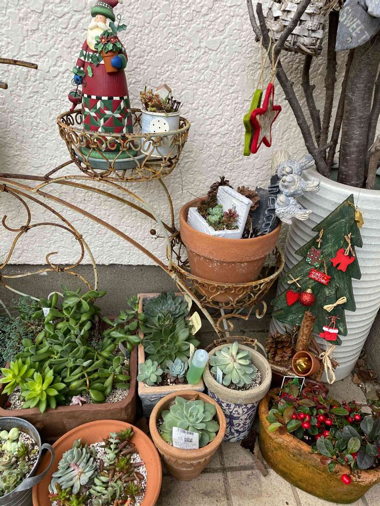 ツリー🌲は独立した鉢にツリー型の木がついてて、それに釘打って色々つけました🎁💓
