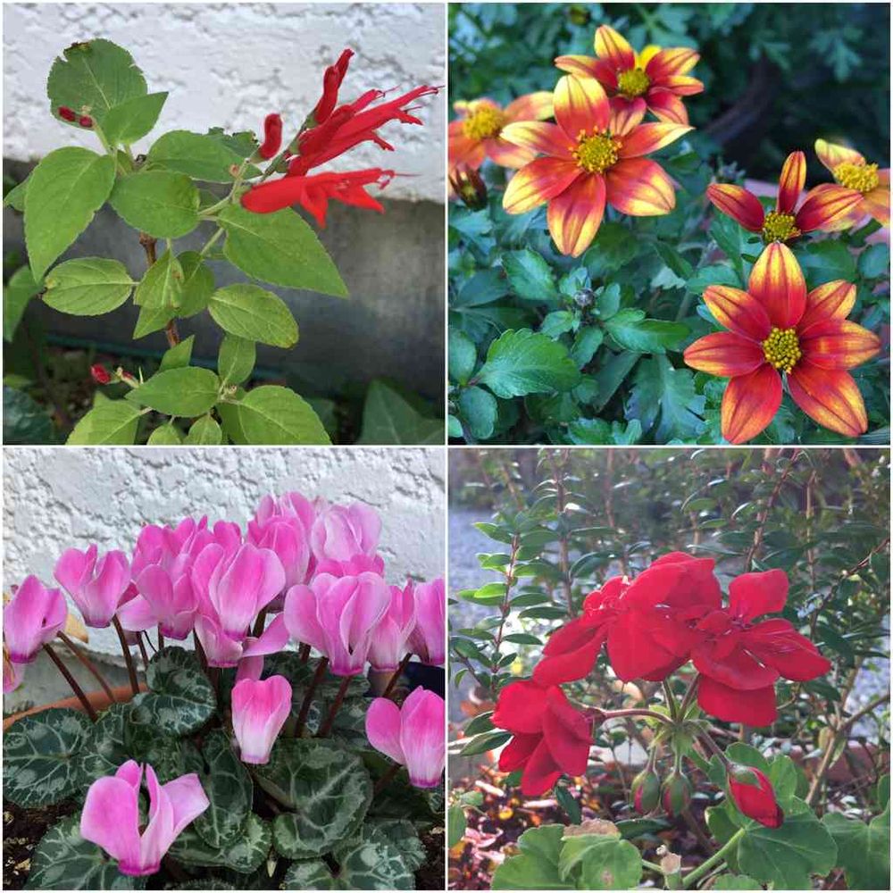 パイナップルセージ、ビデンス(天使のきらめき)シクラメン、ゼラニウム