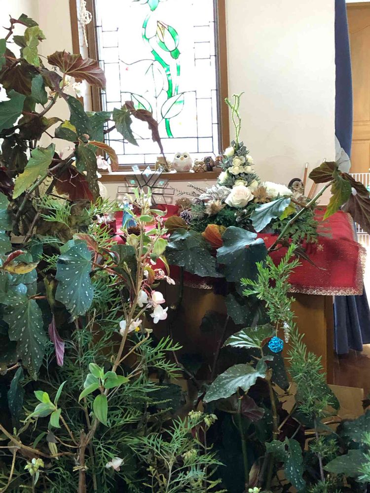 つぼみはあるけど一向に花の咲かないグレビレアにアレンジで使用した小物を吊るして見ました。😅