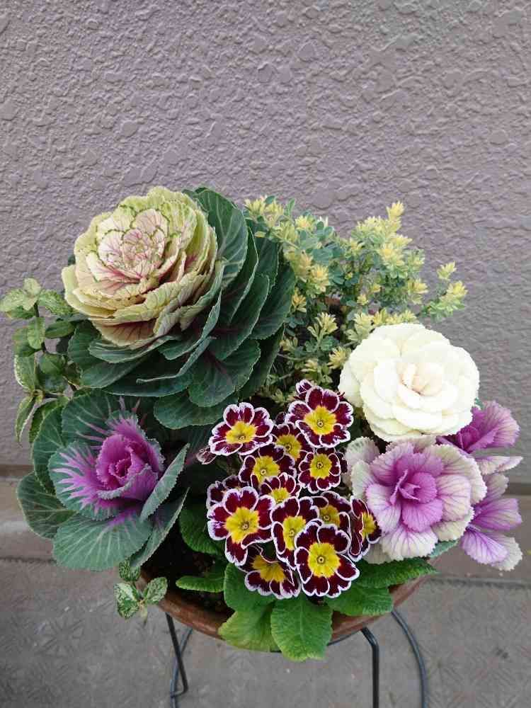 先日購入した葉牡丹三種類にプリムラと