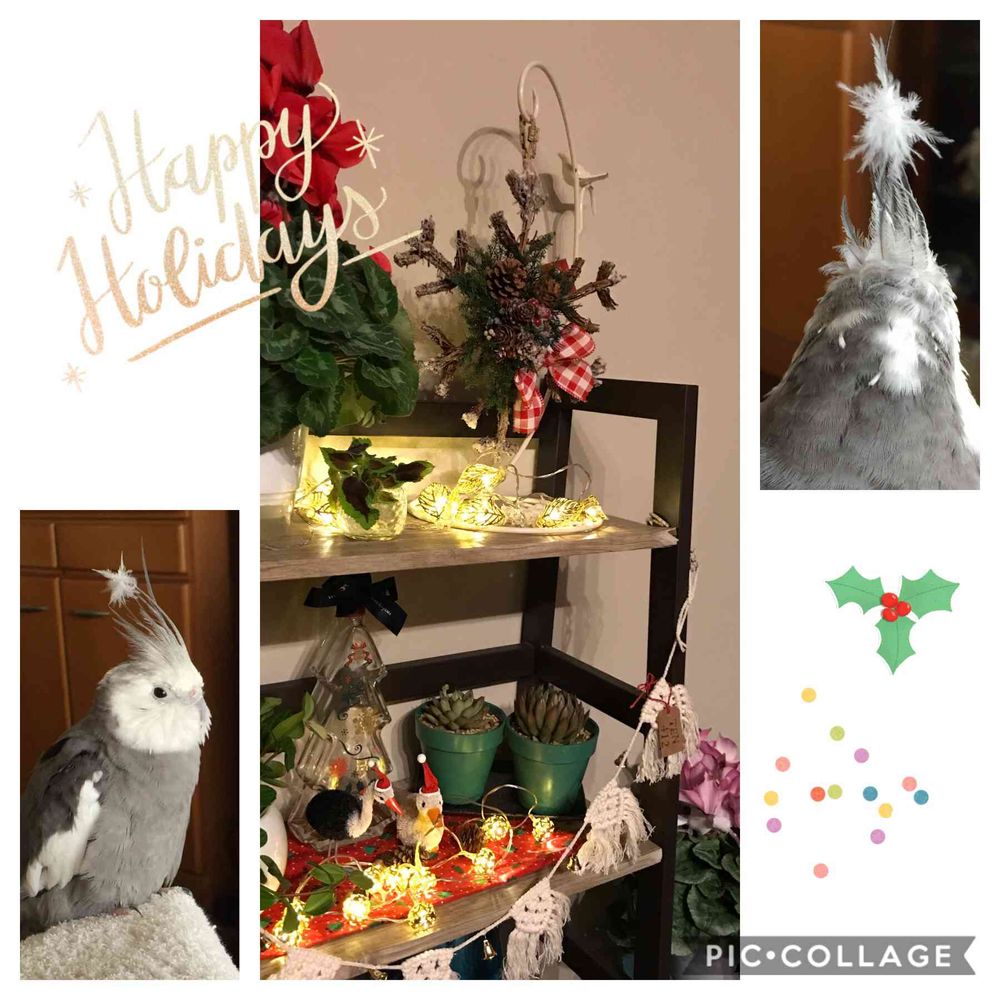 頭の上の自分の羽毛を 付けて まるでツリー🎄の てっぺんの星🌟のよう✨しっかり モデルしてますね👍